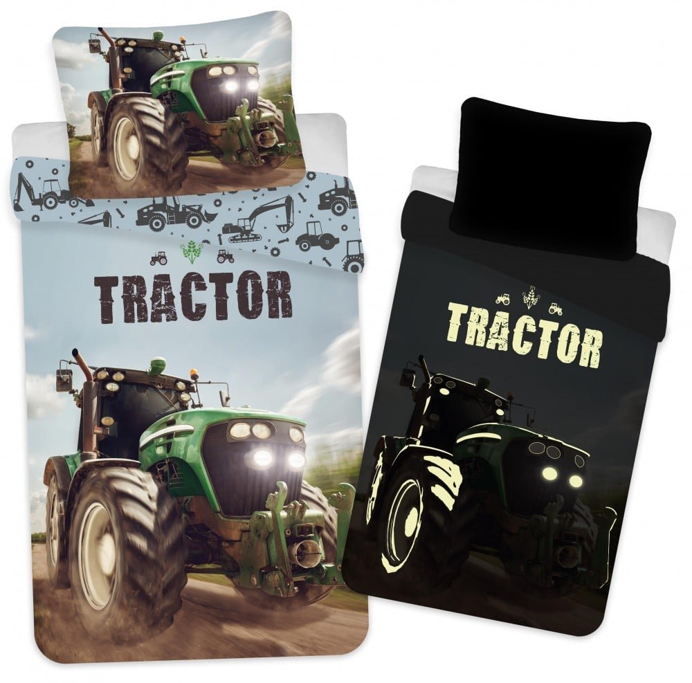 Traktor sötétben világító ágyneműhuzat 140×200cm, 70x90cm
